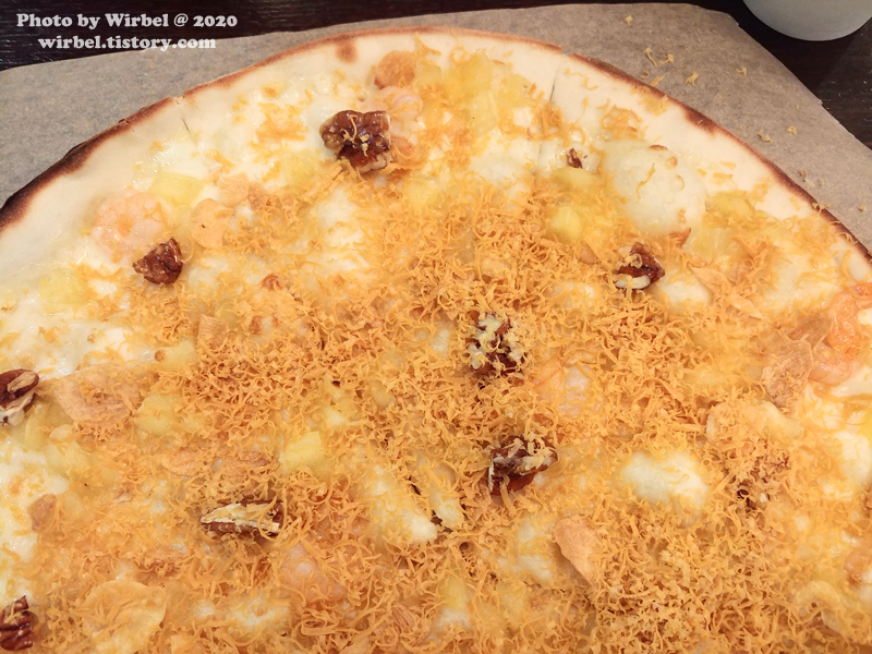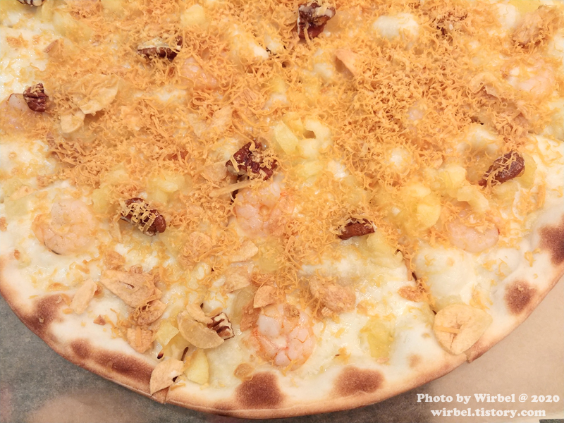 기존 갈릭 스노윙 피자에 피칸과 브라운 치즈가 곁들여지는 것이 특징입니다.