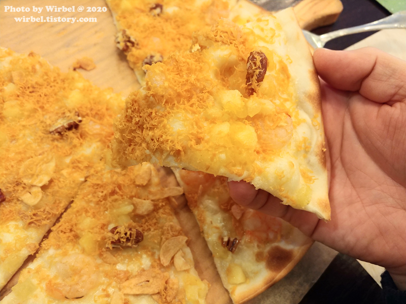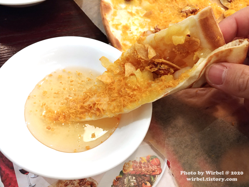 꿀에 찍어 먹는 갈릭 스노윙 피자는 입에 착착 달라붙지요.