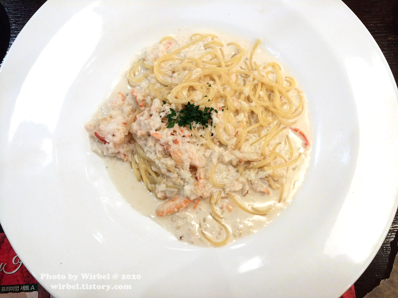 입안에서 사르르 녹는 게살과 탱글한 바닷가재 살이 갈릭 크림 소스와 함께 입안에 녹아드는 크림 파스타.