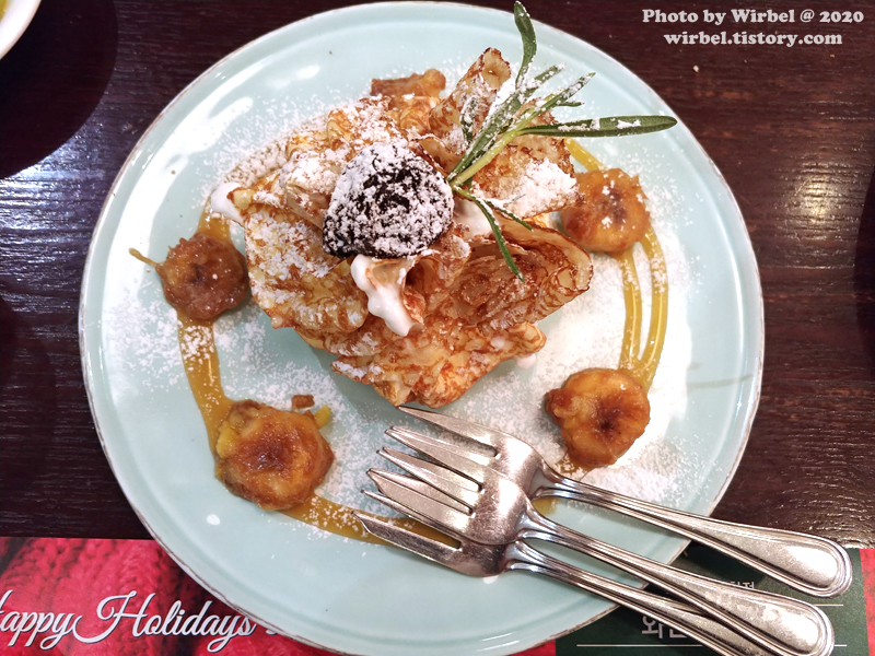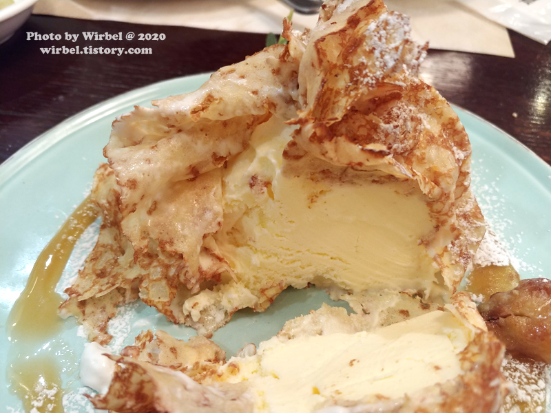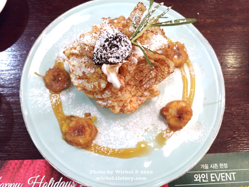 부드럽고 달콤한 크레이프에 시나몬 버터로 볶아낸 바나나와