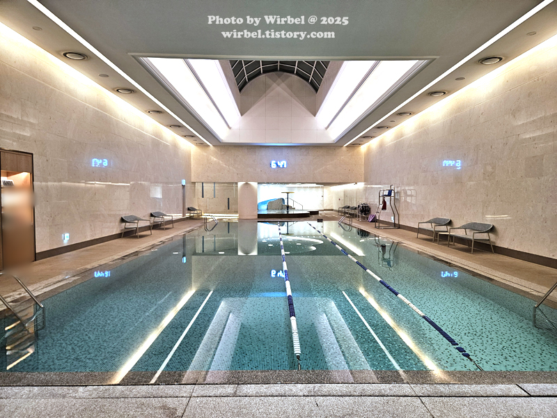 잠실 롯데호텔 수영장 레인 하나는 멤버십 라인이고 그다음이 왕복 라인, 그 옆이 자유롭게 놀 수 있는 곳입니다.