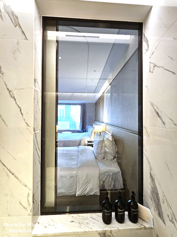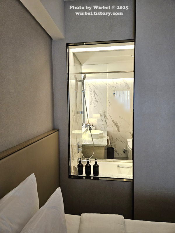 욕실에서 바깥을 볼 수 있게 창문이 뚫려 있습니다.