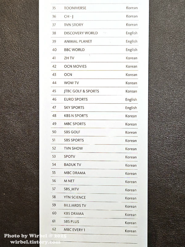 TV 채널은 IPTV처럼 다양한 채널이 있습니다.