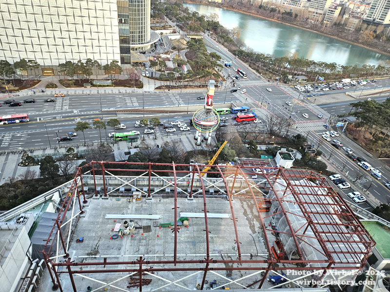 롯데호텔 로비 위쪽 건물은 공사 중이군요.