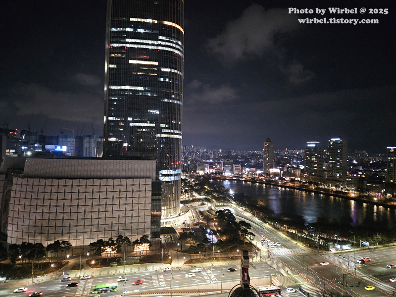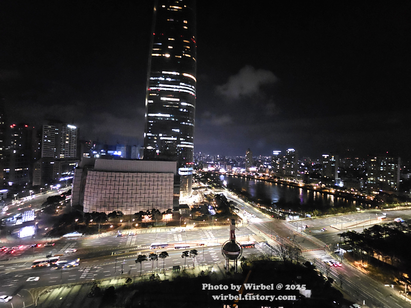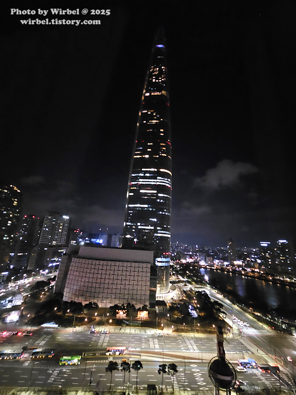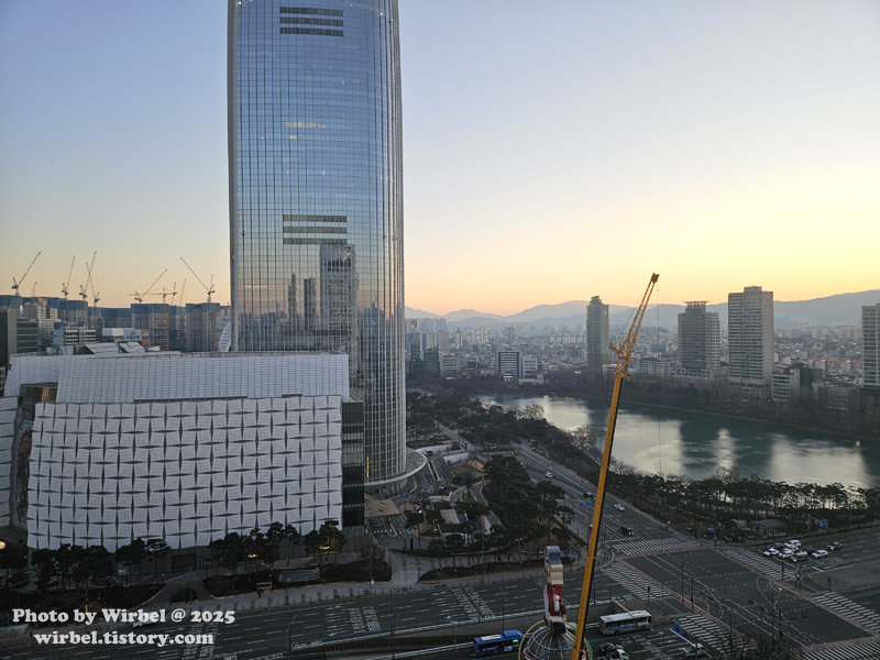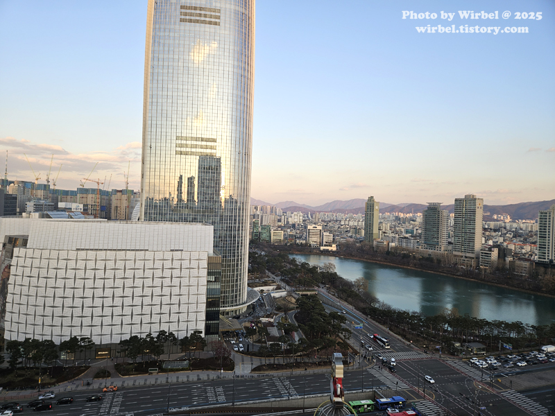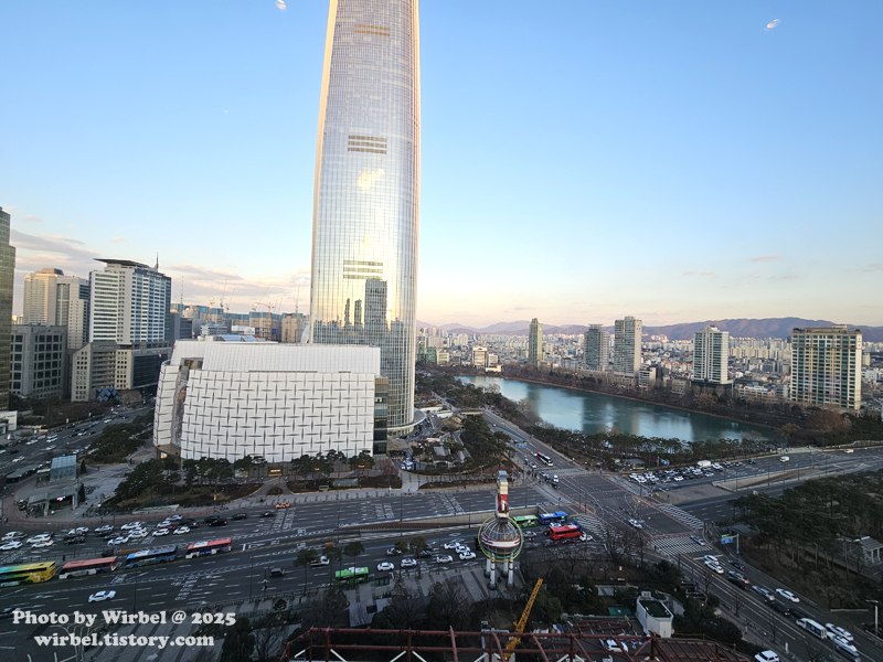 롯데월드타워와 석촌호수뷰가 보이는 전망입니다.