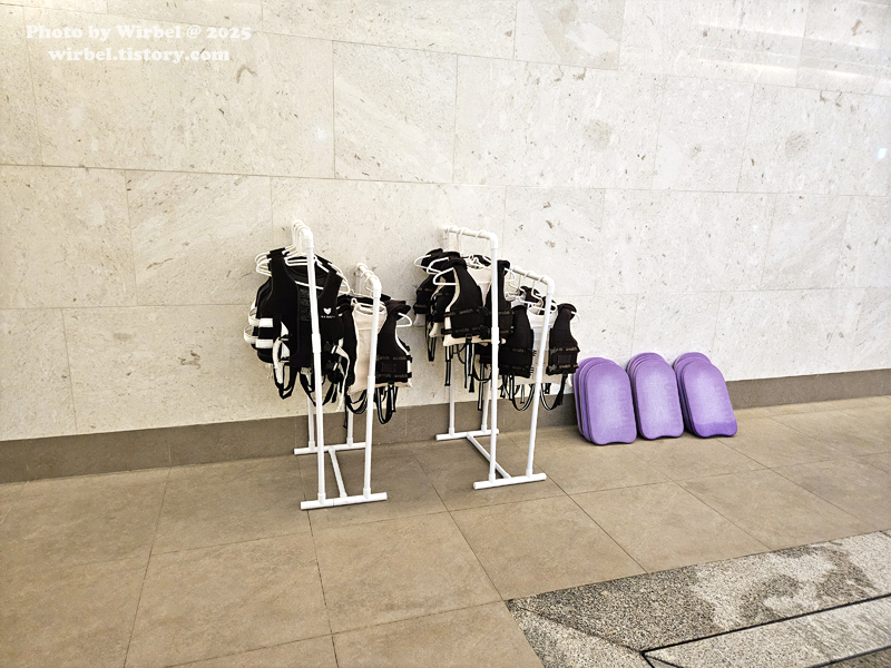 잠실 롯데호텔 수영장에는 구명조끼와 킥판이 있습니다.