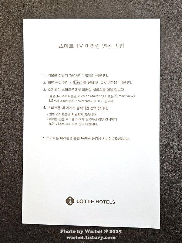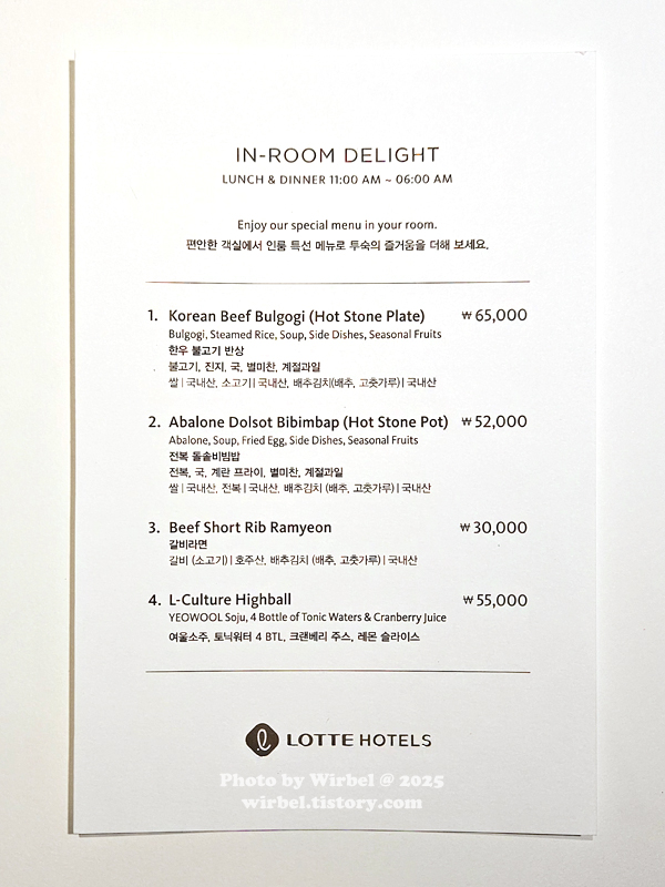 롯데호텔 인룸다이닝은 핸드폰으로 주문할 수 있습니다.