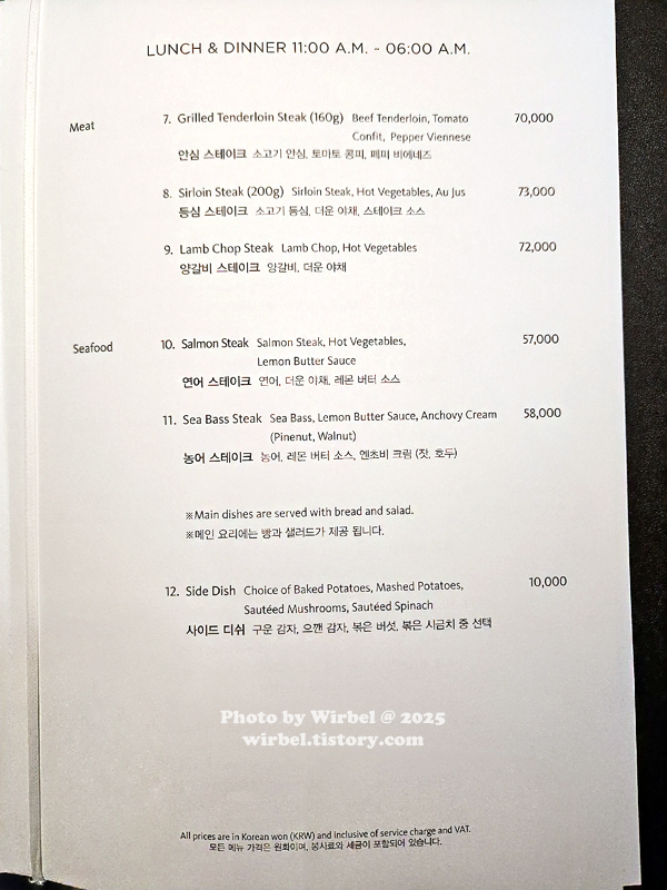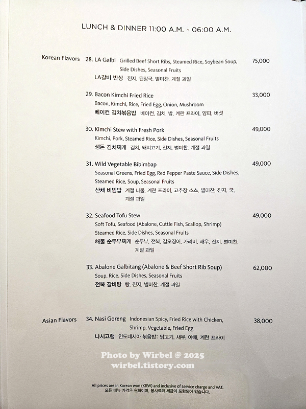 송파구 롯데호텔월드 인룸다이닝 우너산지 표시판.