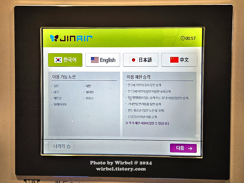 진에어 셀프 체크인 이용 가능 노선은 일본 등이 있습니다.
