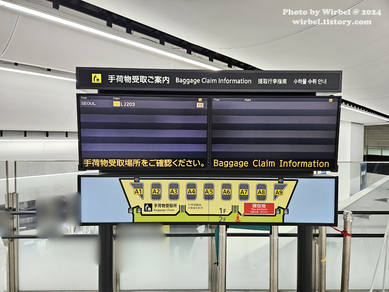 이날 아침에 도쿄 나리타 공항에 도착한 비행기가 이거 하나여서 일본 입국 심사는 빠르게 진행됩니다.