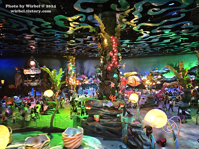 비가 와도 놀 수 있는 실내 어트랙션들이 있는 도쿄디즈니씨 머메이드라군입니다.