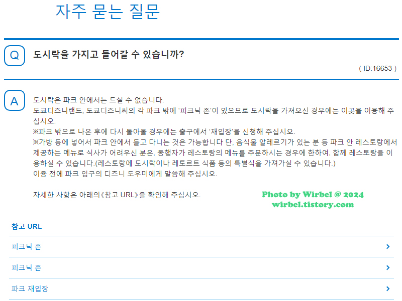출처 도쿄디즈니랜드 홈페이지. https://faq.tokyodisneyresort.jp/tdr/ko/faq_detail.html?id=16653