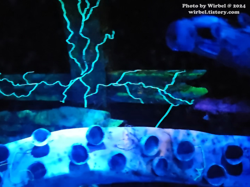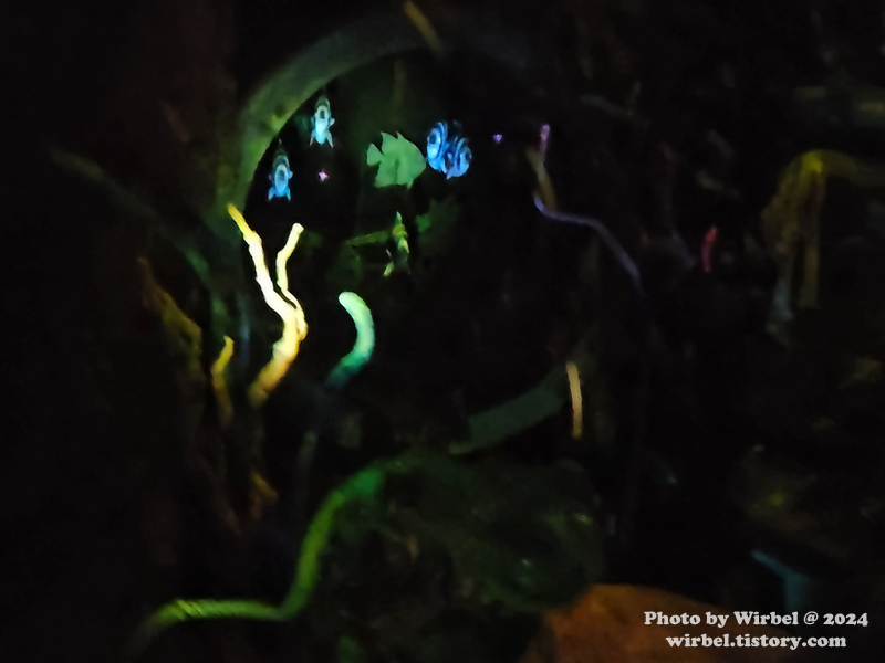 잠수정을 타고 전등을 비추면서 물속 세계를 관람하는 느낌입니다.
