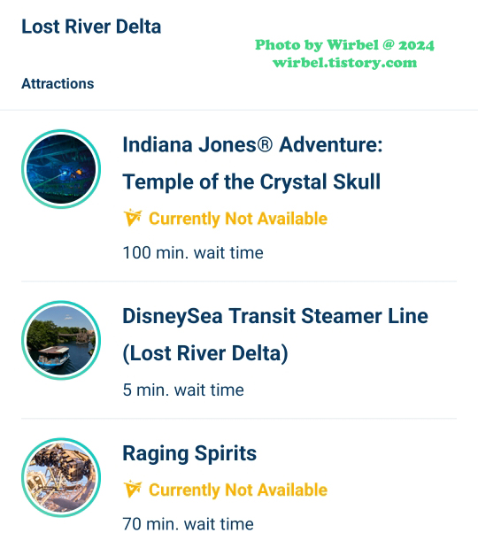 스릴 있는 도쿄디즈니씨 어트랙션을 타기 위해서 로스트 리버 델타 구역으로 갑니다.