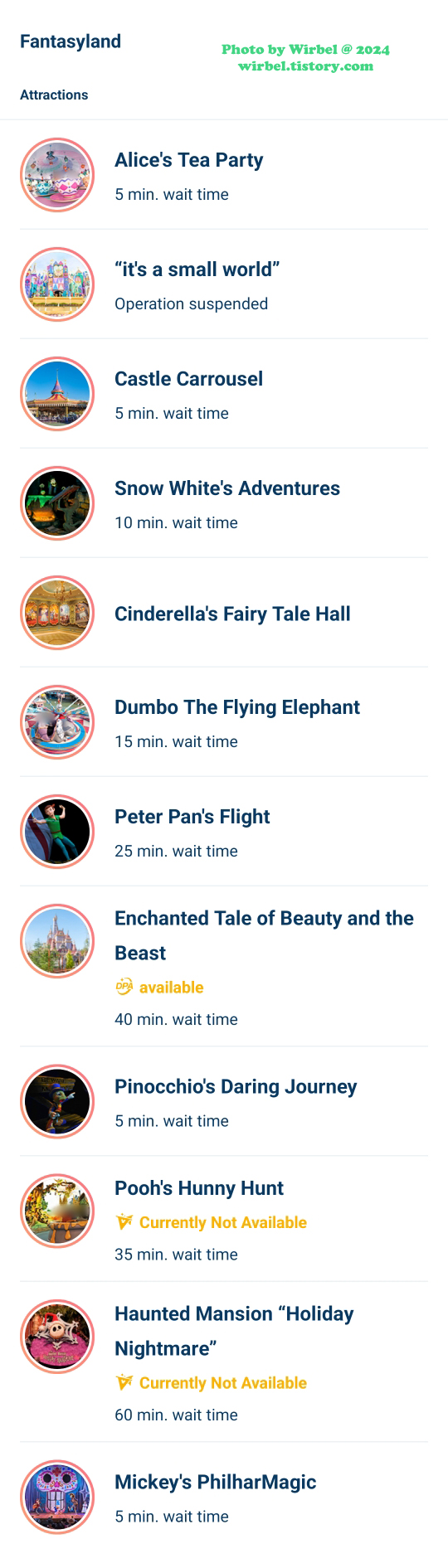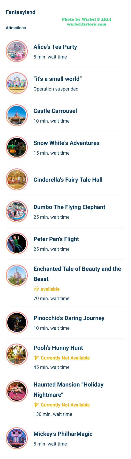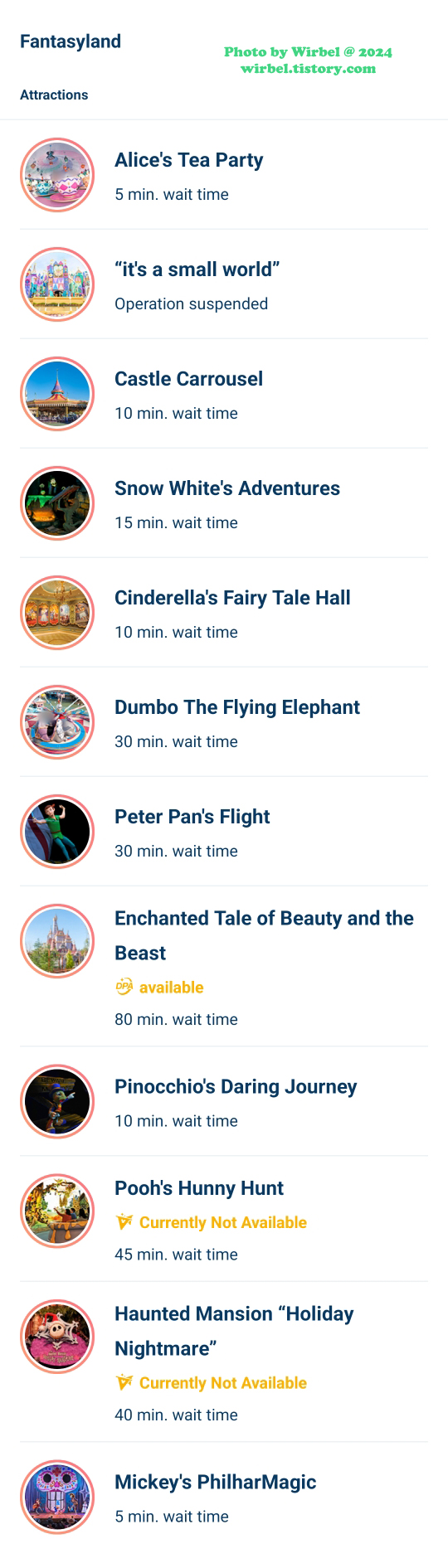 | 판타지랜드 | 미키의 필하매직 | 없음 | 454명 | 약 16분 | 엔트리 접수 |