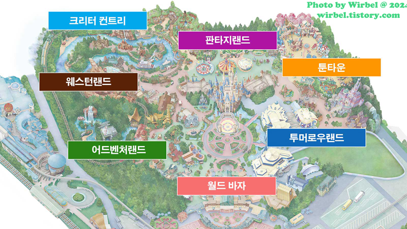 도쿄디즈니랜드는 크게 7개 구역이 있습니다.