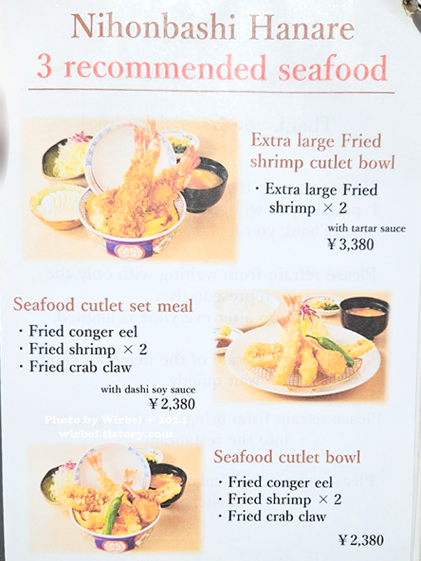 니혼바시 돈카츠 하지메 하나레 해산물 튀김 가격.