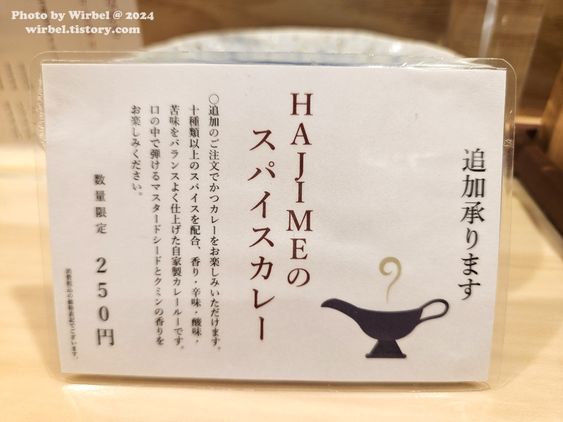 2024년 10월 기준 니혼바시 돈카츠 하지메 하나레 한정 메뉴.