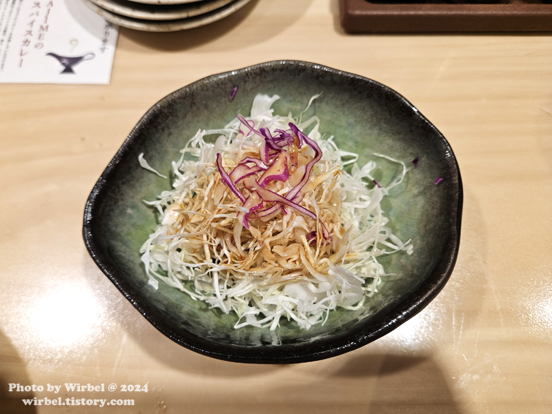 타레 소스가 뿌려져 있기 때문에 그냥 먹어도 좋고 돈카츠와 곁들여서 먹어도 좋습니다.