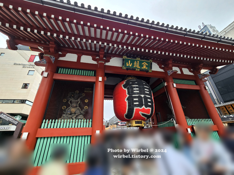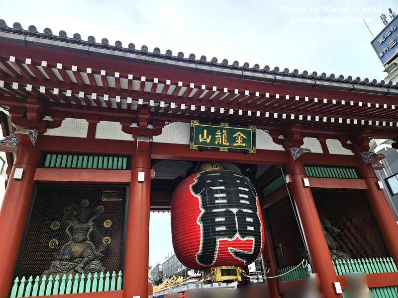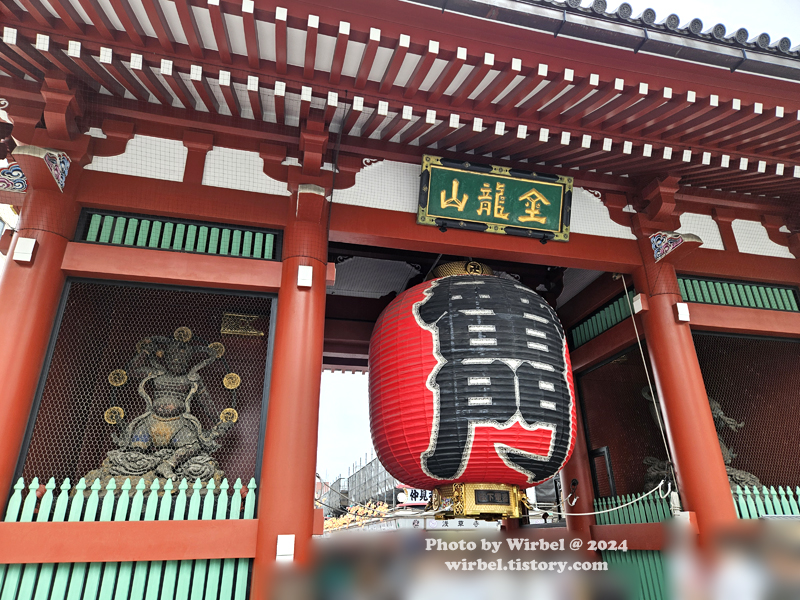 현판에는 곤류잔(金龍山)이라고 적혀 있고 초롱에는 가미나리몬(雷門)이 적혀 있습니다.