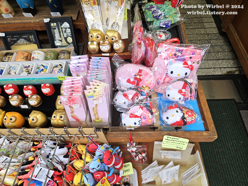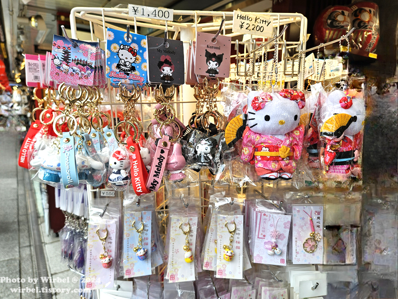 나카미세 거리에는 기념품 가게도 많이 있는데 도쿄 기모노 산리오 굿즈도 많이 있습니다.