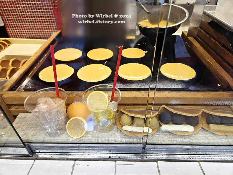 후나와 도라야키는 두께감이 있는 팬케이크 안에 단팥소가 들어가 있습니다.