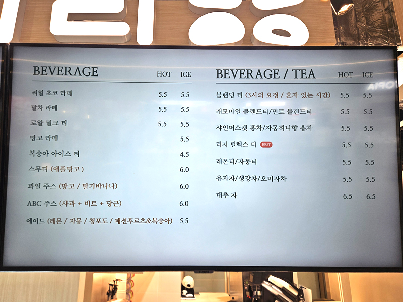 강동 더리버몰 카페 앤티앤스 메뉴 가격.