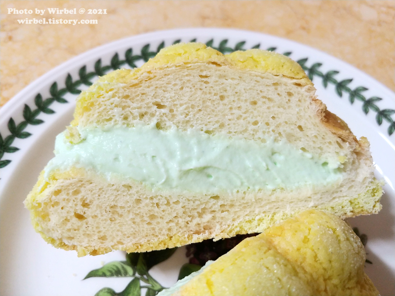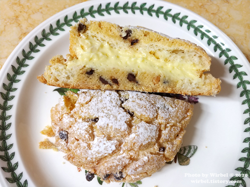 소보로와 슈크림을 동시에 맛볼 수 있는 빵입니다.
