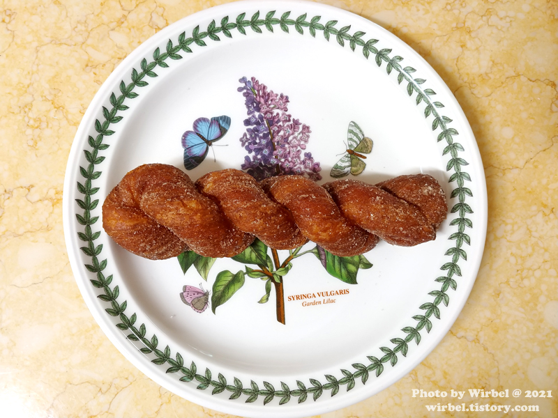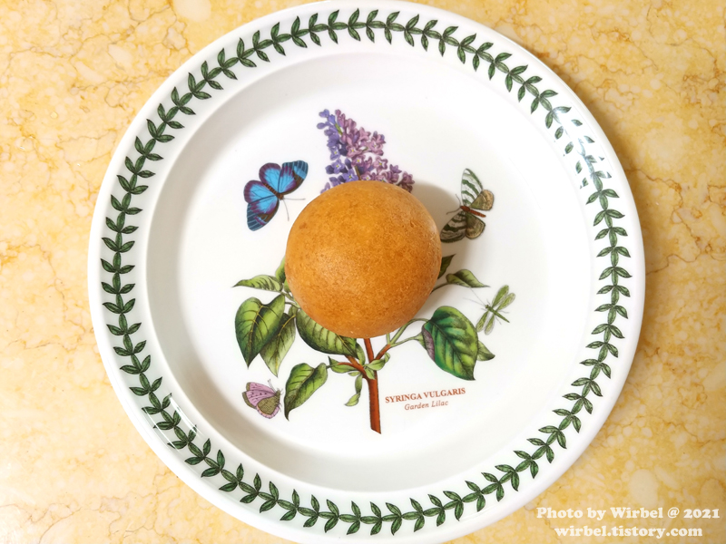 찹쌀도넛 안에 팥 대신에 크림이 들어가 있습니다.