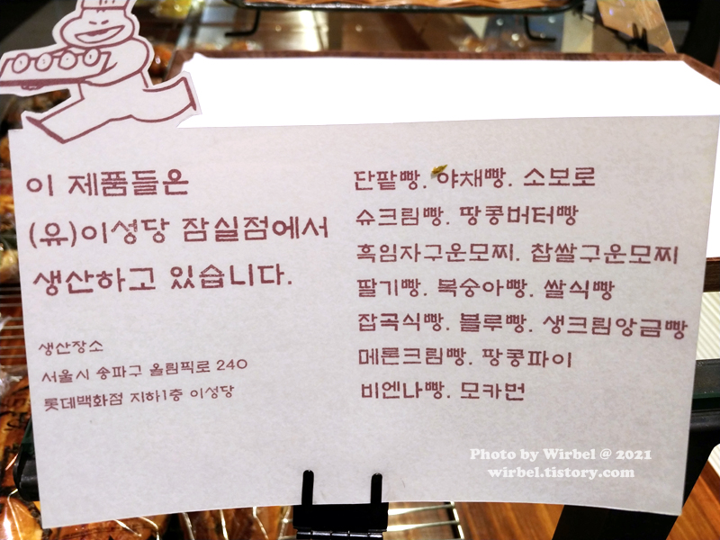 시기에 따라 빵 종류가 다를 테니 참고만 하세요.