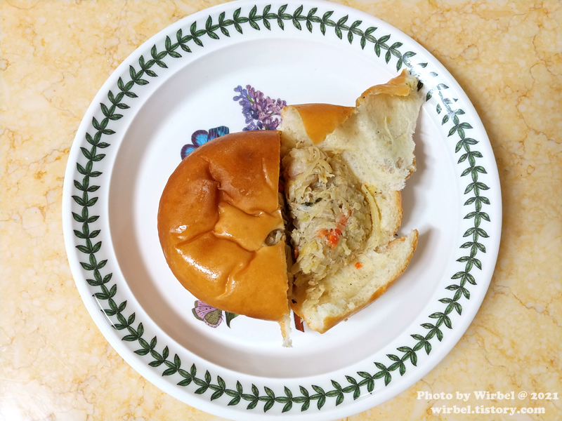아삭한 야채와 간간한 양념이 잘 어우러지는 빵입니다.