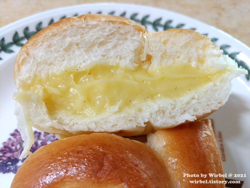 커스터드크림이 풍족하게 들어 있어서 가격 대비 성능비가 좋은 슈크림빵입니다. 츄릅~~