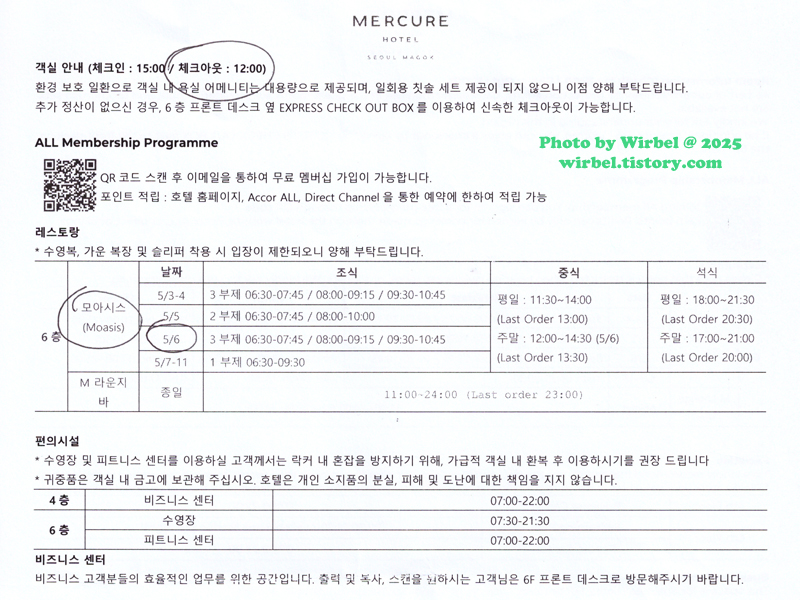 2025년 5월 머큐어 서울 마곡 호텔 숙박 후기 https://wirbel.tistory.com/1091