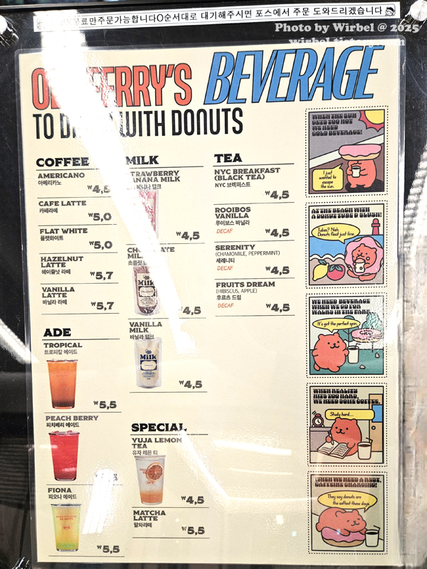 올드페리도넛 음료 가격.