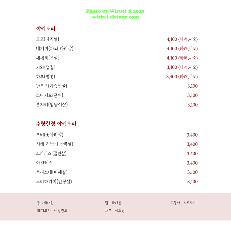 2024년 7월 야키토리나루토 강남점 후기 https://wirbel.tistory.com/890