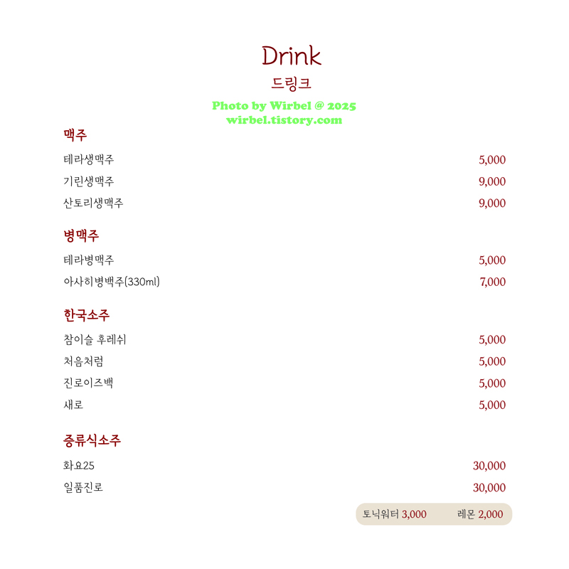 비어벨이 다녀온 맛집 & 여행(wirbel.tistory.com)의 비어벨입니다. 후기 남길 때는 긍정적인 시각으로 남기는 편입니다. ^^ 방문했던 시기에 따라 맛, 가격, 서비스 등이 지금과 다를 수 있는 부분을 참고하시고요. 음식점에 대한 생각은 지극히 주관적이니 맛집 후기는 참고만 하시는 거 다들 아시죠?! ^^ |