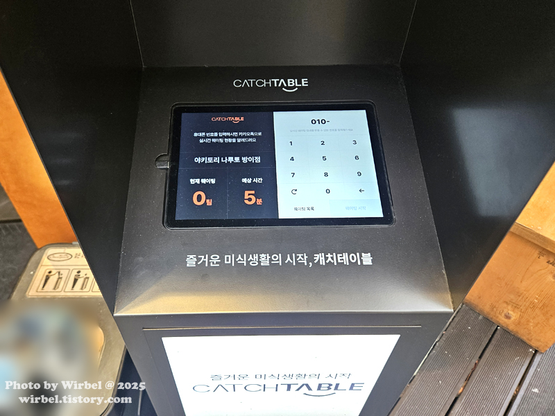 야키토리 나루토 방이점 웨이팅 시스템으로 캐치테이블Catch Table)을 사용하고 있습니다.