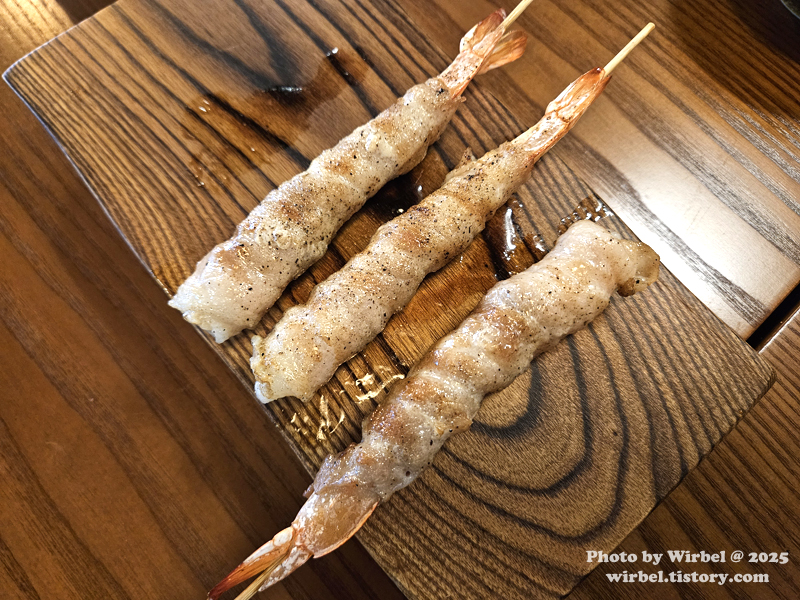 야키토리나루토 3꼬치 코스 2) 새우삼겹말이꼬치구이.