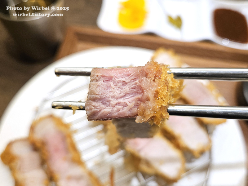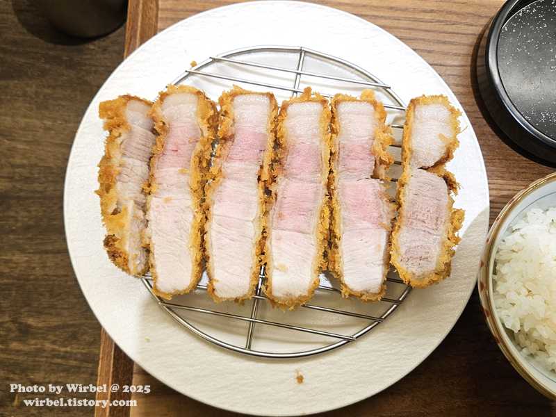 등심, 가브리살, 비계가 차곡차곡 있는 특로스카츠입니다.