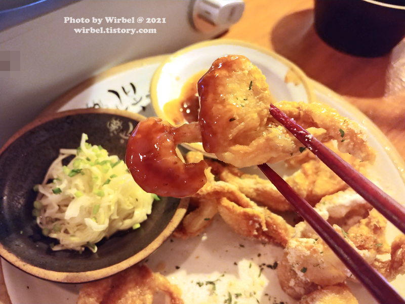 개인적으로 닭고기에서 닭껍질도 좋아하는데 이렇게 튀김으로 만나니 새롭네요.