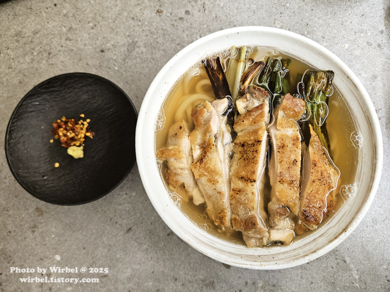 구운 대파와 닭다리살이 토핑으로 들어가 있는데 육수의 깊은 맛이 느껴집니다.