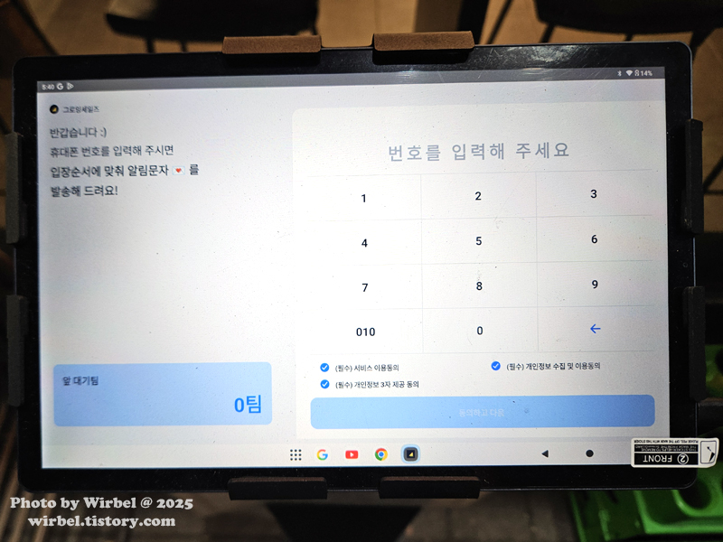 교차점 대기는 만석시에는 웨이팅 시스템에 등록하는 방식입니다.