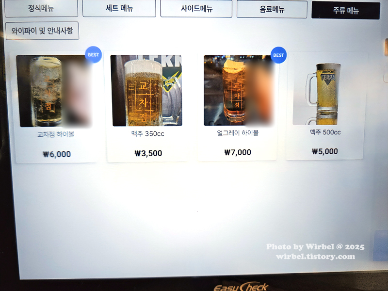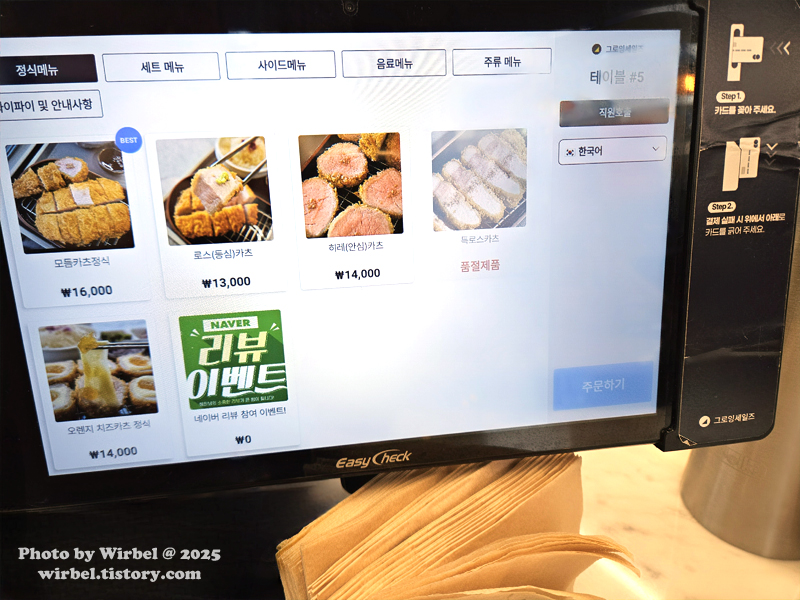 교차점은 테이블에서 태블릿으로 주문하면서 결제하는 방식입니다.