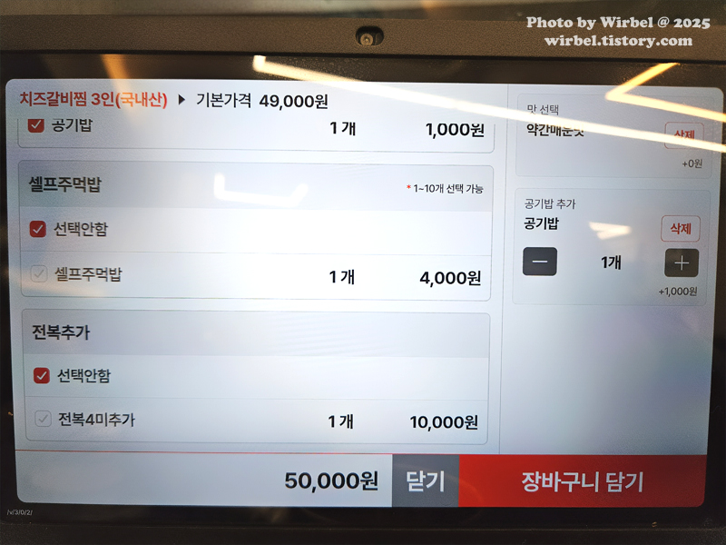 <치즈돌판돼지갈비찜> 3인, 가격: 49,000원.