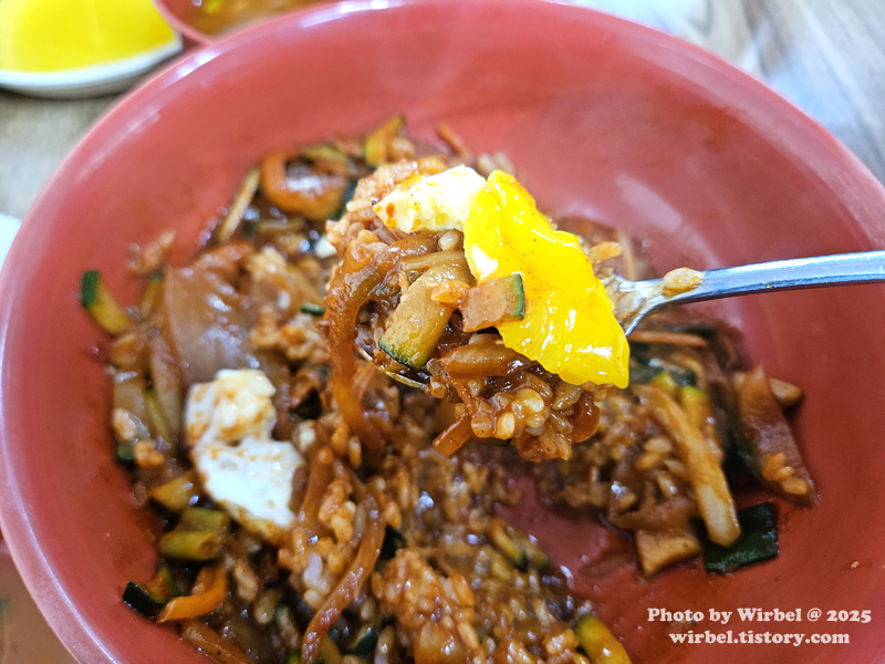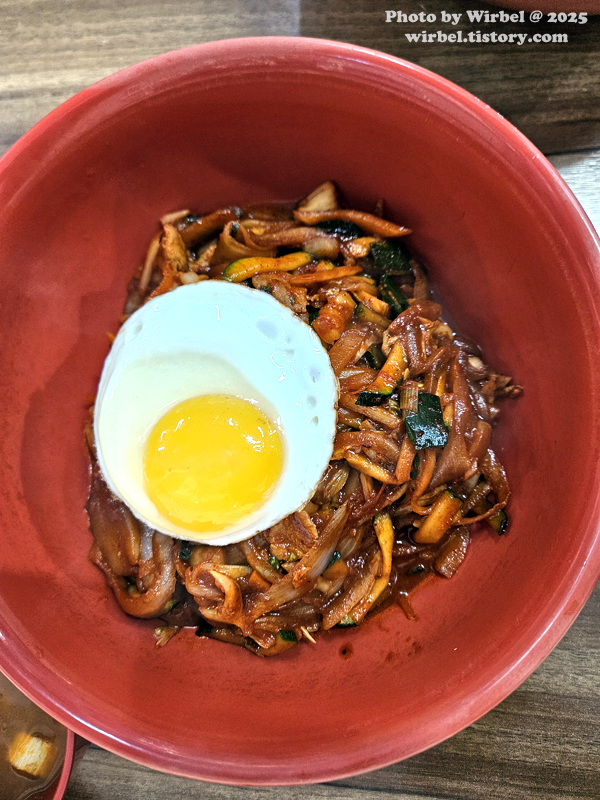 중화비빔밥을 반숙달걀프라이와 곁들여서 먹어서 덜 맵게 느껴지는 것도 같습니다.