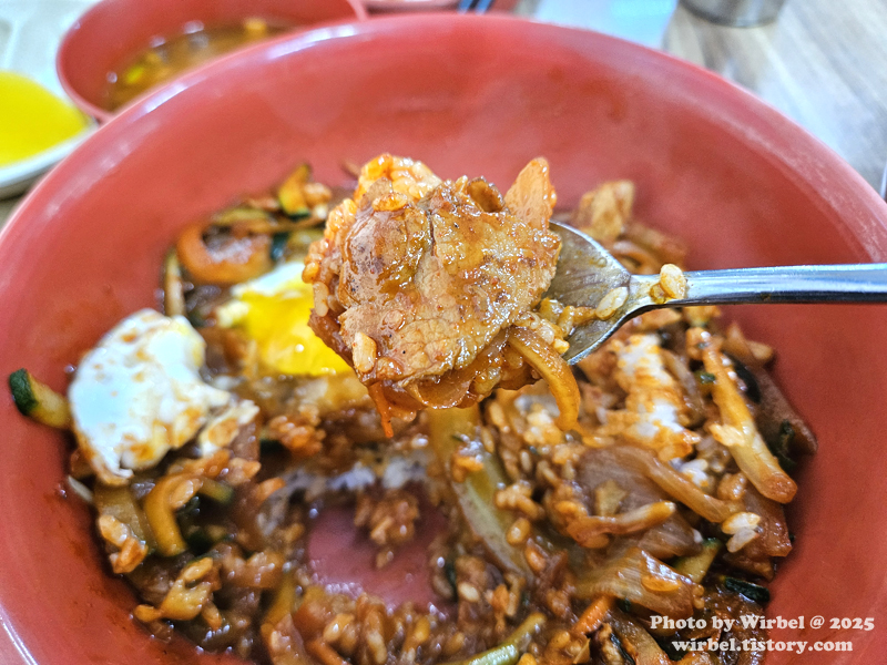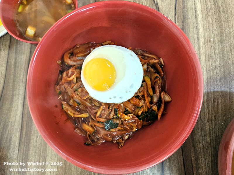 중화비빔밥 먹으면 오징어직화불고기처럼 불맛이 느껴집니다.