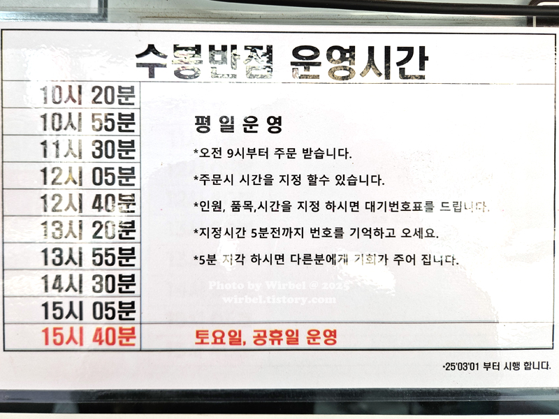 수봉반점 워크인 할 때는 오전 9시부터 대기할 수 있습니다.