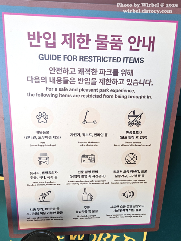 롯데월드 어드벤처 부산 반입 제한 물품 안내.