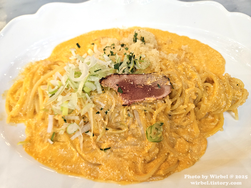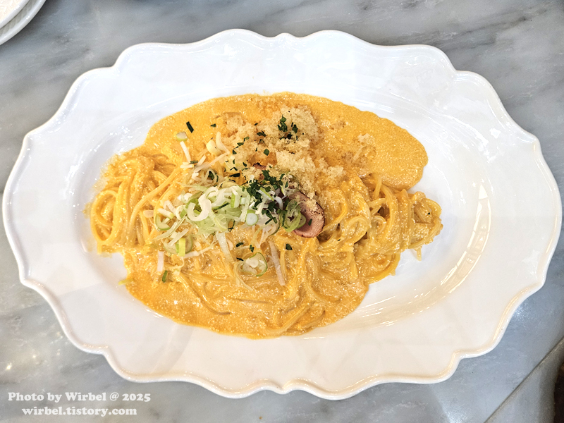 <통명란 크림 파스타>, 단품 가격: 25,500원.
