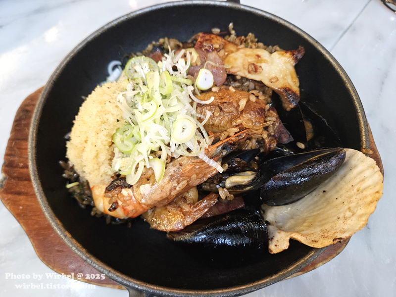 새우, 가리비, 버섯 등이 들어간 빠에야입니다.